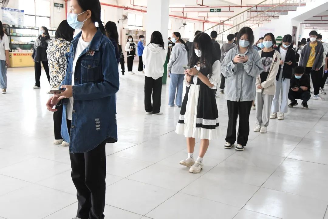 为避免聚集带来的隐患,学校防疫组成员、教师志愿者在现场负责落实班级次序、引导指路、一米线、戴口罩、检录扫码信息等组织工作,保障检测工作高效率完成。师生按照学校规定的检测时间,分批错峰到达采样现场,依次开展核酸采样,整个过程井然有序,检测流程顺畅、快速、高效。